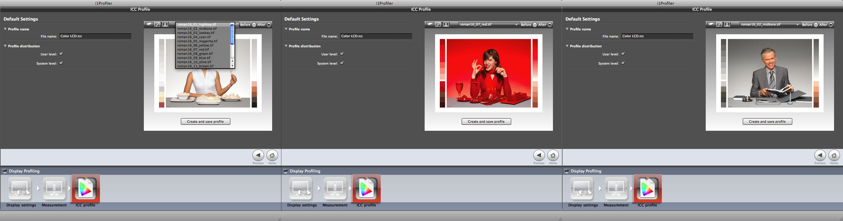 Una vez que ha completado el perfil, los botones de radio le permiten comparar cómo se verá la imagen antes y después de la calibración.
