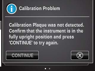 If the instrument is in a locked down poition, or the calibration plaque has been moved out of position for any reason you will see the error message below.