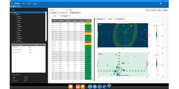 Il software EFX QC imposta e comunica digitalmente le tolleranze generali e le procedure di misurazione. Utilizzando EFX QC con uno spettrofotometro MA-5 QC, MA-T6 o MA-T12 multi-angolo, i professionisti del controllo qualità possono definire, comunicare e garantire la compatibilità con gli standard e le procedure di misurazione riguardanti colore, sparkle e coarseness nelle supply chain decentrate.