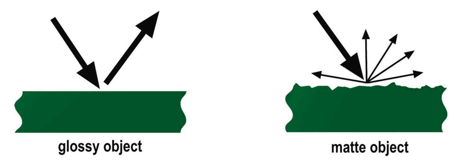- A Superfície - Superfícies diferentes absorvem e refletem a luz de maneira diferente, dando uma aparência de cor diferente. Objetos brilhantes refletem a luz diretamente, dando à cor uma aparência brilhante, enquanto objetos foscos dispersam a luz refletida em todas as direções. Tintas brilhantes e foscas são um bom exemplo desse fenômeno. Você pode pedir à loja de tintas para misturar os mesmos corantes em cada uma, mas quando os colocar lado a lado na parede, a cor parecerá diferente.